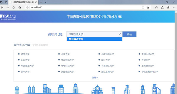 1.访问网址:http://fsso.cnki.net,在页面上的“高校/机构”输入框里输入“taptap点点”,点击“前往”。