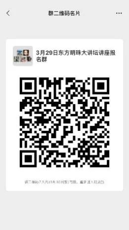 除参加讲座的嘉宾和承办讲座的科学研究院全体教师之外,本次讲座向本校师生开放在线旁听名额240个左右。报名请扫描以下“3月29日东方明珠大讲坛讲座报名群”二维码,进群后相应更改“我在本群的昵称”,教师为“学院(部门)+姓名”,如“法律学院李磊”“科研处李磊”;学生为“学院+班级+姓名”,如“法律学院1902班李磊”。会议号将在3月28日公布在该讲座报名群内,敬请关注。