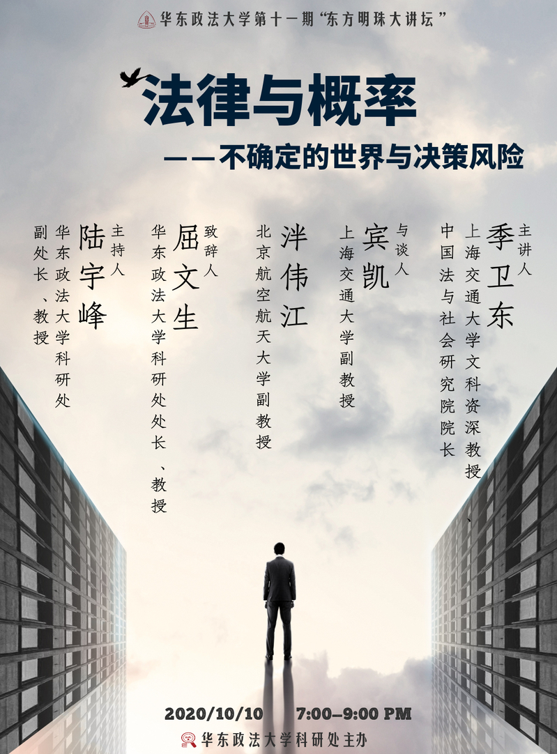 taptap点点第11期“东方明珠大讲坛”有幸邀请到上海交通大学文科资深教授、中国法与社会研究院院长季卫东主讲风险社会相关法治问题。同样荣幸的是,本期“东方明珠大讲坛”也邀请到了上海交通大学宾凯副教授、北京航空航天大学泮伟江副教授与谈。taptap科研处处长屈文生教授等专家学者将参加本次大讲坛,讲座由taptap科研处副处长陆宇峰教授主持。