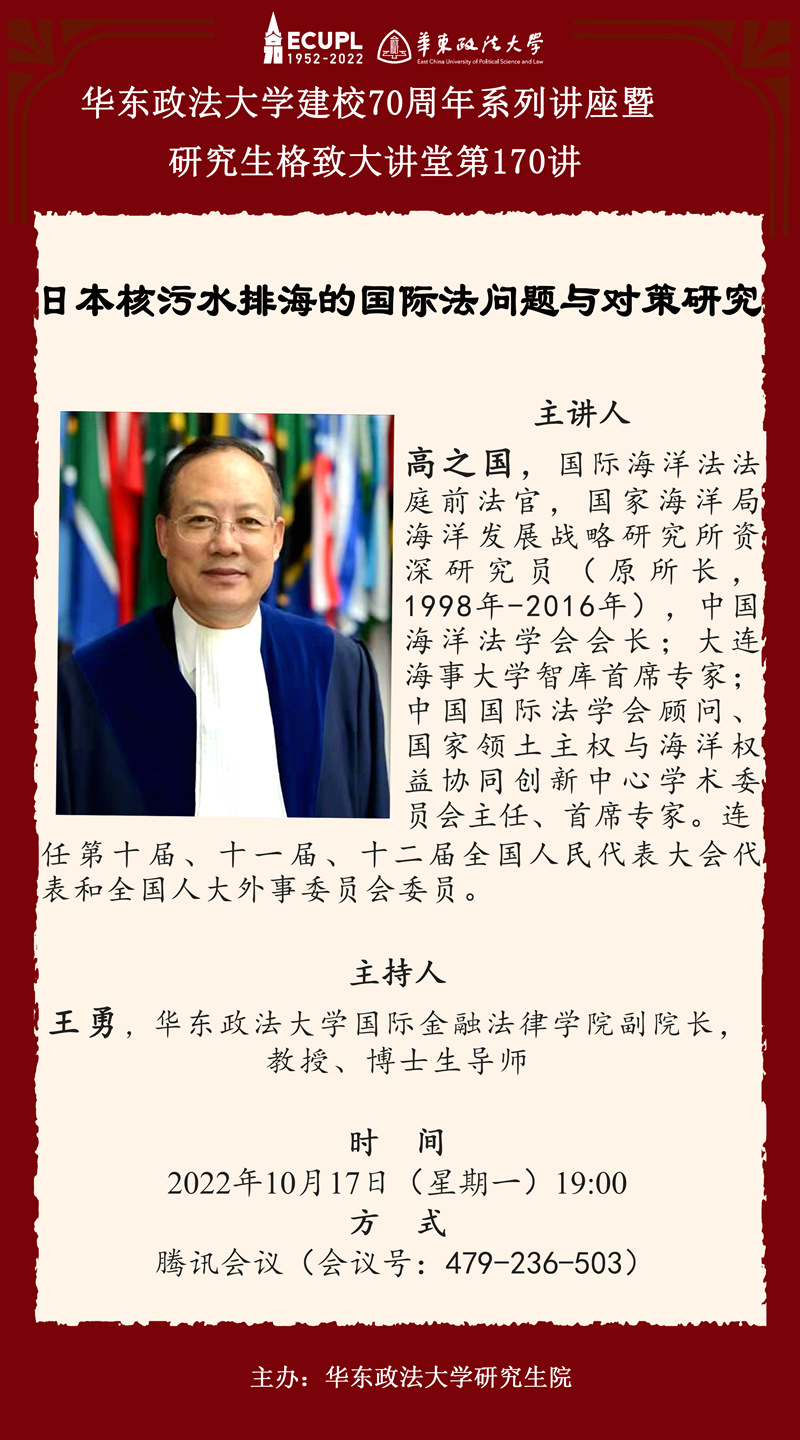 高之国:日本核污水排海的国际法问题与对策研究——华政建校70周年系列讲座暨研究生格致大讲堂第170讲