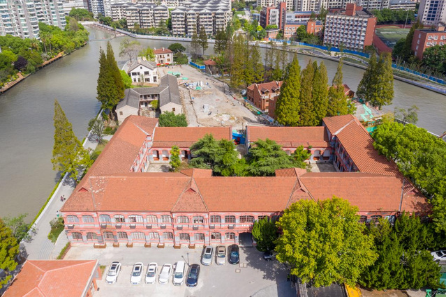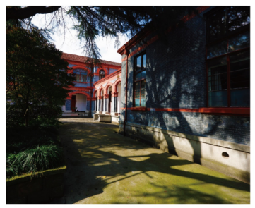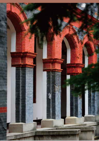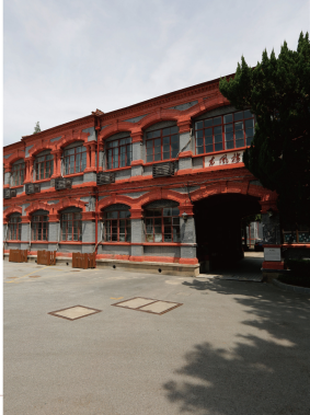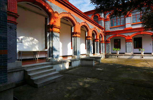 The two-storey building, with a brick-and-timber structure, presents a quadrangle-style pattern. The facade is mainly made of grey bricks, sketched with white lines, and decorated with red bricks in distinct colour. The overall style of the building remains that of a veranda, with curved arches on the windows. Such an ingenious combination makes the cumbersome brick-and-timber structure lofty and elegant.