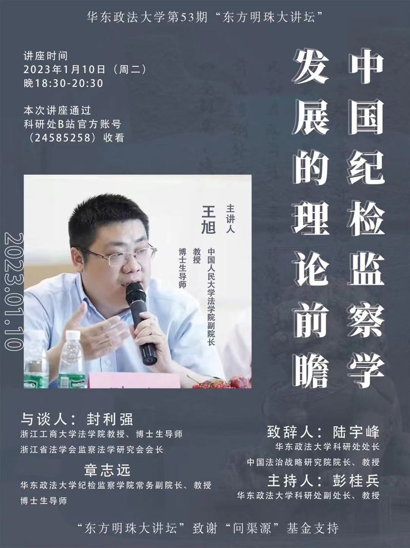 有鉴于此,taptap点点第53期“东方明珠大讲坛”有幸邀请到中国人民大学法学院副院长王旭教授主讲“中国纪检监察学发展的理论前瞻”。