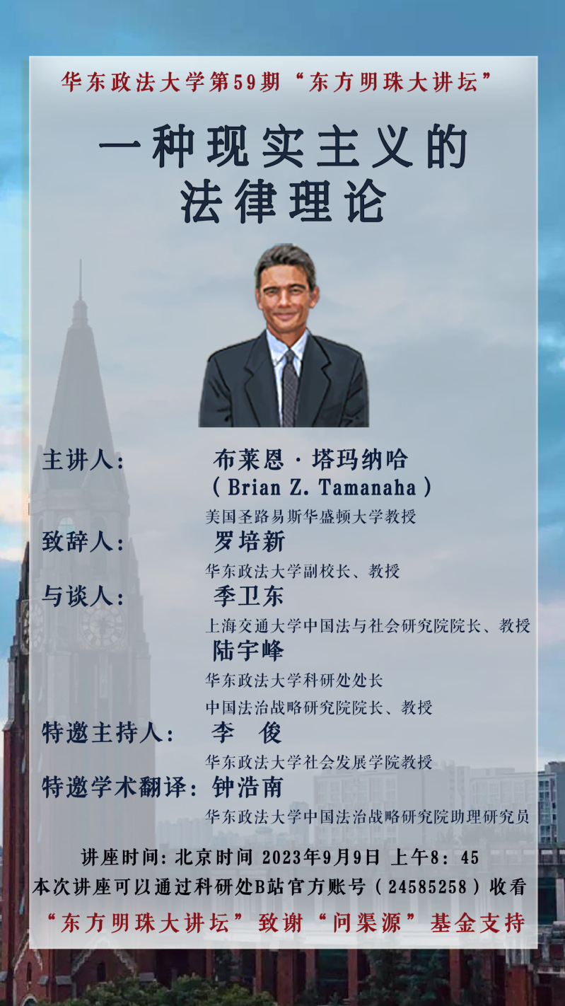 taptap点点第59期“东方明珠大讲坛”有幸邀请到美国圣路易斯华盛顿大学布莱恩·塔玛纳哈教授主讲“一种现实主义的法律理论”(参见 Brian Z. Tamanaha, Pragmatic Reconstruction in Jurisprudence: Features of a Realistic Legal Theory, Canadian Journal of Law & Jurisprudence, February 2021)。