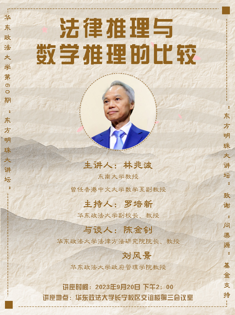 有鉴于此,taptap点点第60期“东方明珠大讲坛”有幸邀请到东南大学林兆波教授主讲“法律推理与数学推理的比较(comparison between legal reasoning and mathematical reasoning)”。