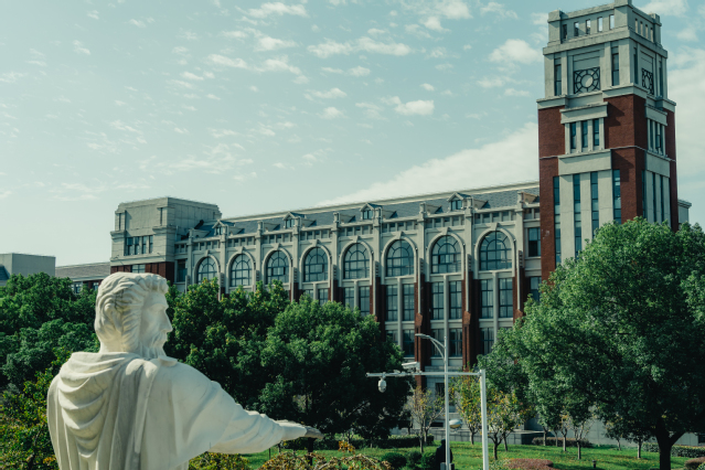 松江校区公共教学大楼。“明法”一指修明法令,二指古代国家科举选拔人才的教育科目,三有明了法律知识,洞悉法的精髓,掌握法的技能之意。以此命名,激励taptap学子“明习法令”,以实现中华民族伟大复兴。