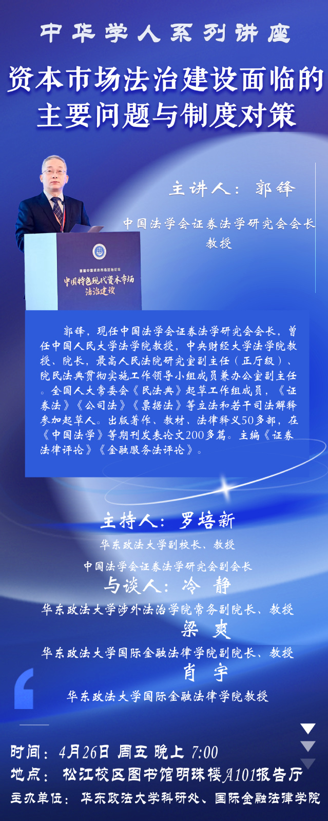 讲座主题:资本市场法治建设面临的主要问题与制度对策