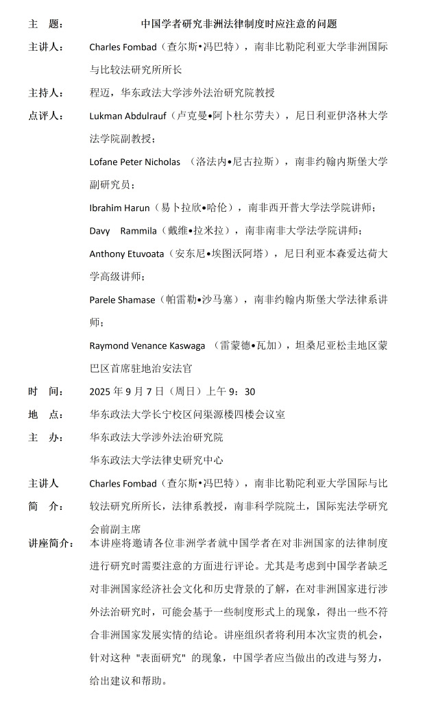 Charles Fombad(查尔斯•冯巴特):中国学者研究非洲法律制度时应注意的问题