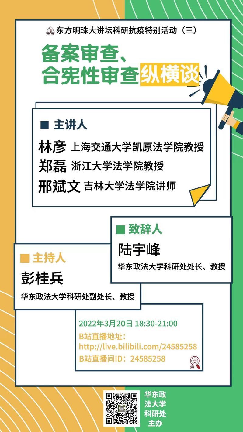 “东方明珠大讲坛”科研抗疫特别活动(三)|林彦、郑磊、邢斌文:备案审查、合宪性审查纵横谈